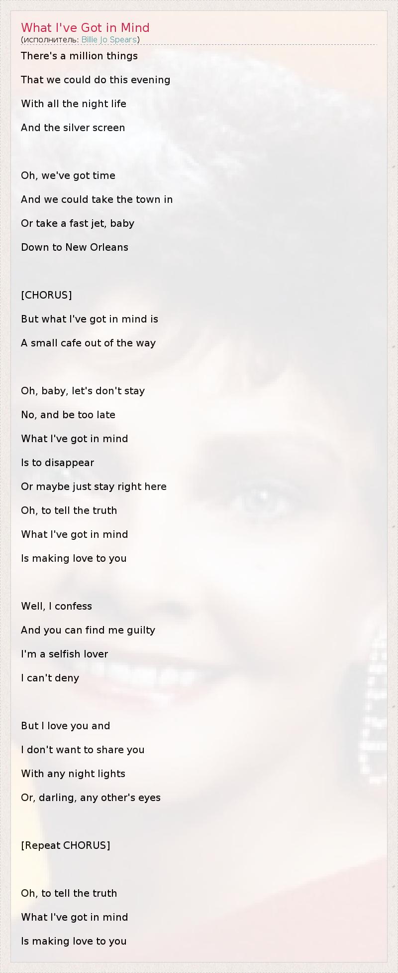 А как ты думаешь, о чем песня "What I've Got in Mind" ?