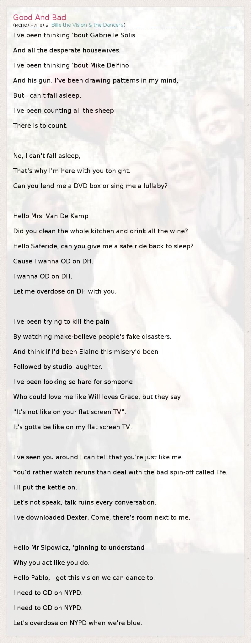 А как ты думаешь, о чем песня "Good And Bad" ?