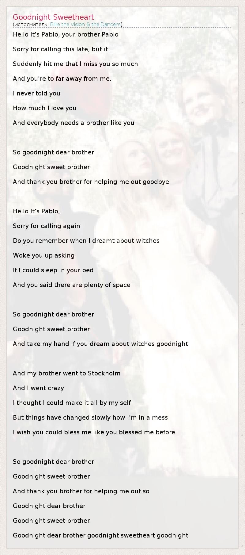 А как ты думаешь, о чем песня "Goodnight Sweetheart" ?
