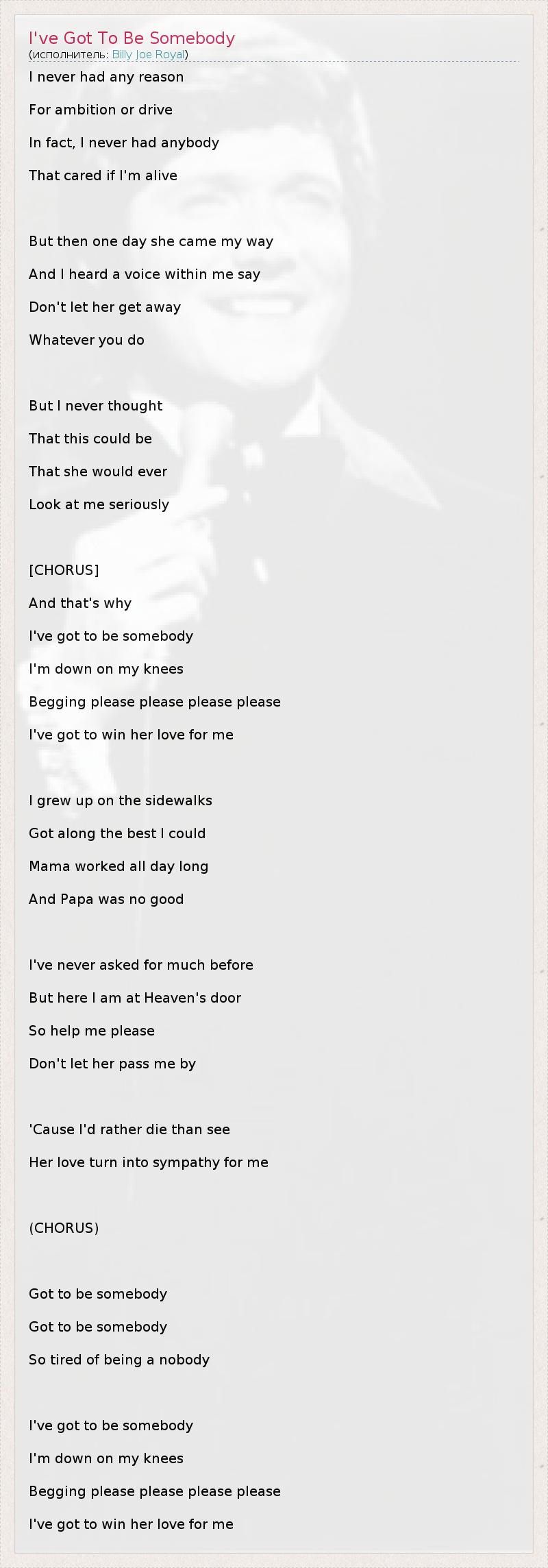 А как ты думаешь, о чем песня "I've Got To Be Somebody" ?