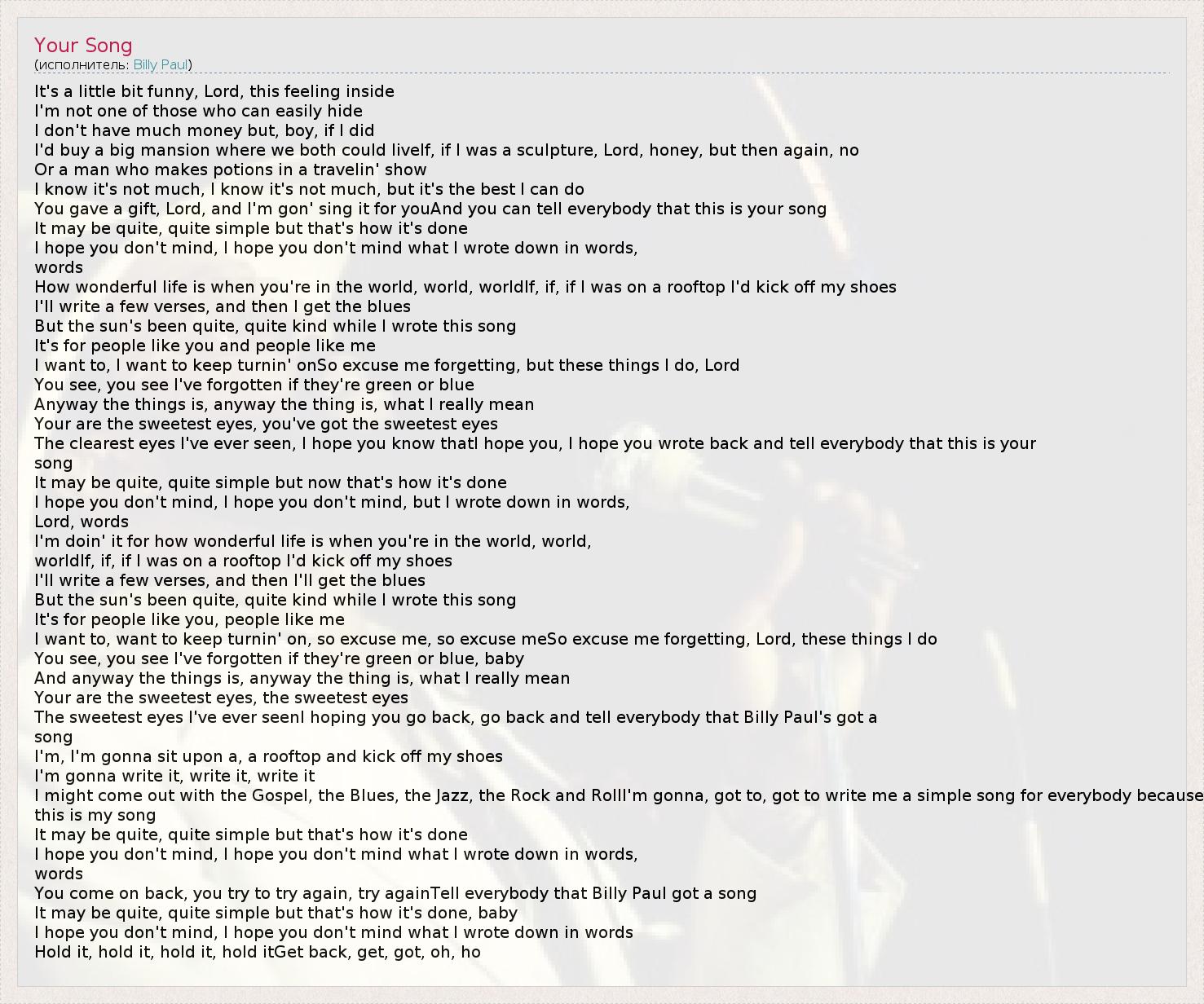 А как ты думаешь, о чем песня "Your Song" ?