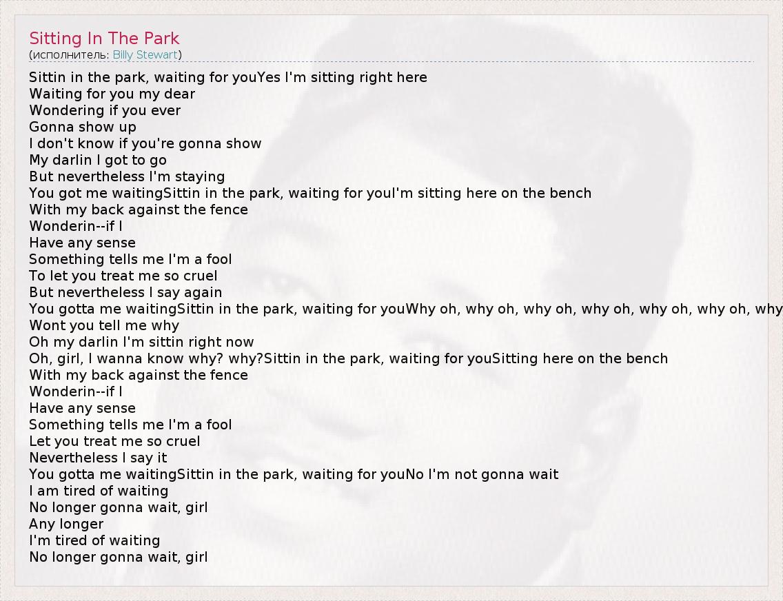 Sittin in the park, waiting for youYes I'm sitting right here
