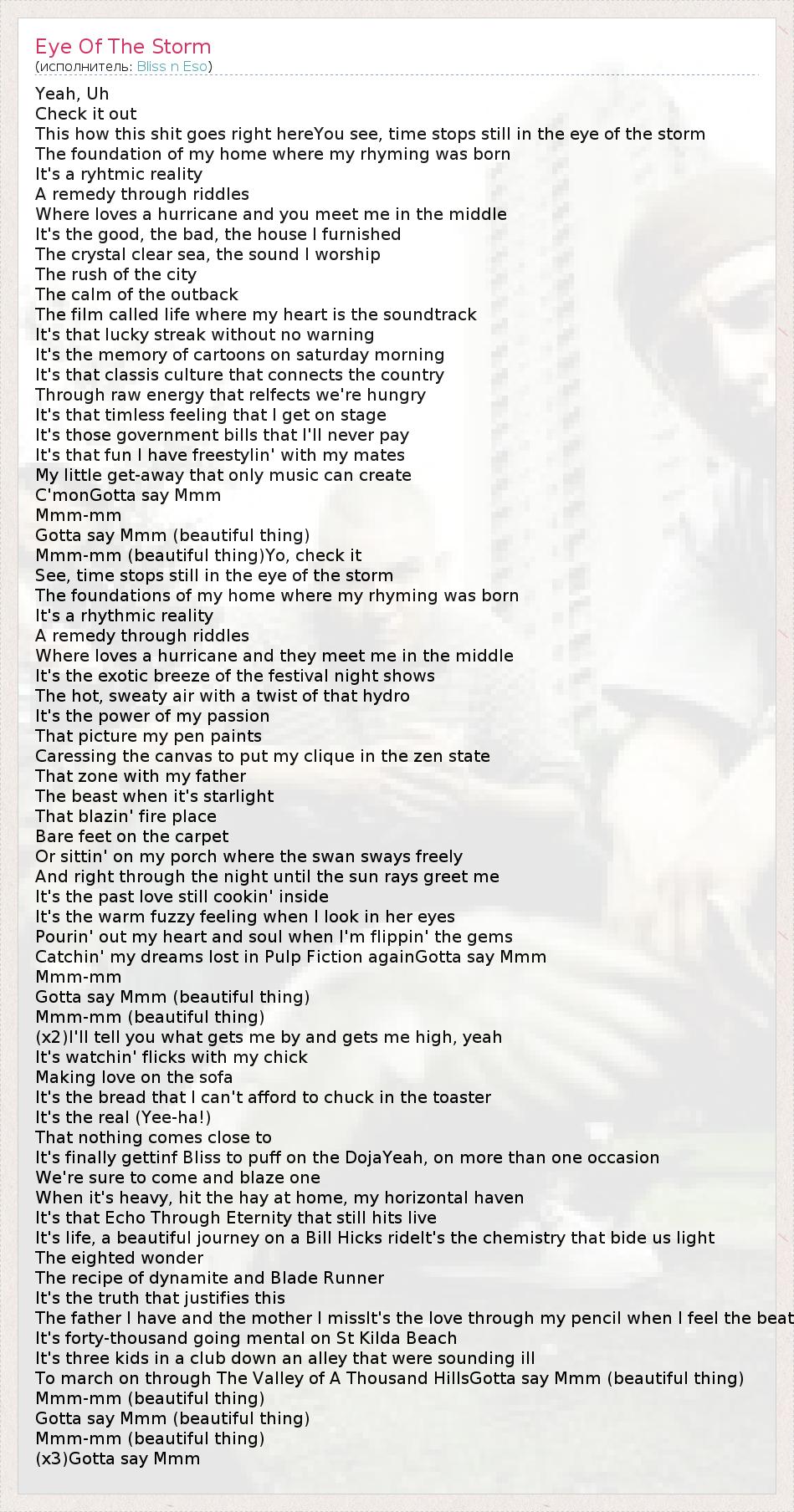 А как ты думаешь, о чем песня "Eye Of The Storm" ?