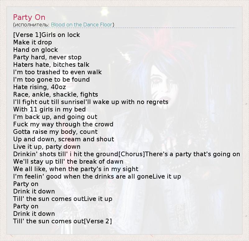 Это интересно:Blood On The Dance Floor образовались в городе Орландо, Флорида, США в 2007 году. В настоящее время группа включает в себя вокалиста Dahvie Vanity и скримера Jayy Von Monroe.Бывшие члены группы - Matty M, Garrett Ecstasy, Nick Wenzel.