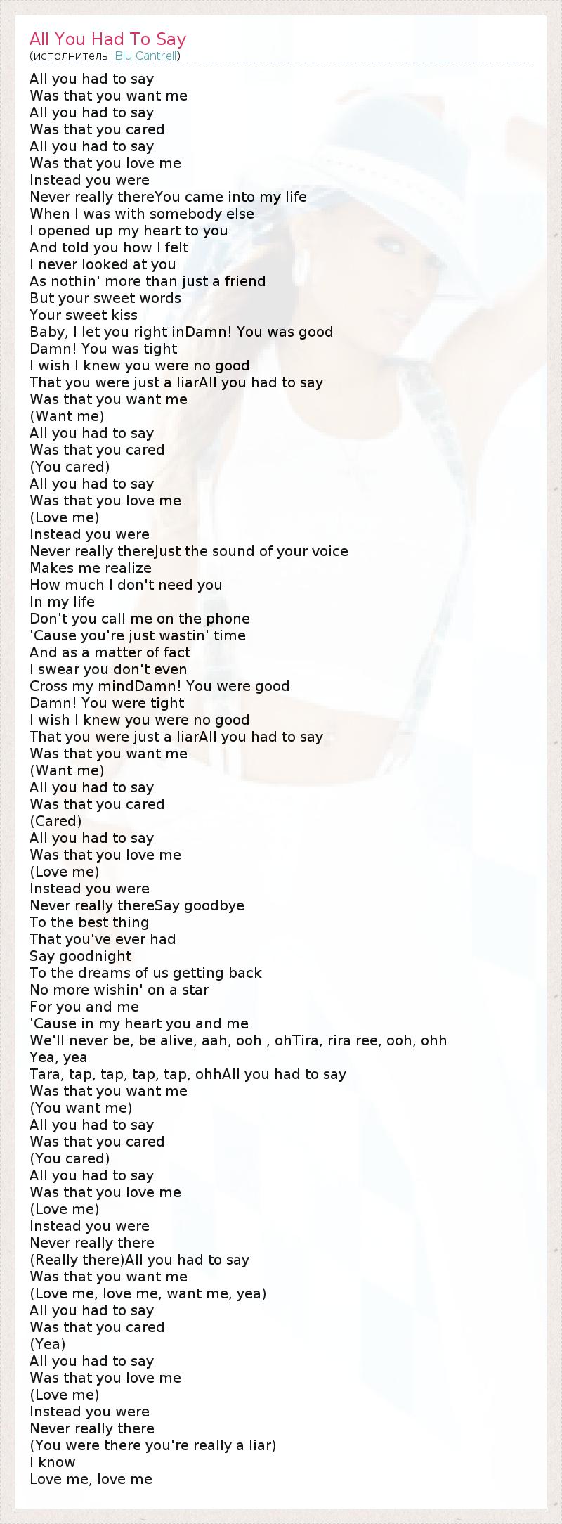 А как ты думаешь, о чем песня "All You Had To Say" ?