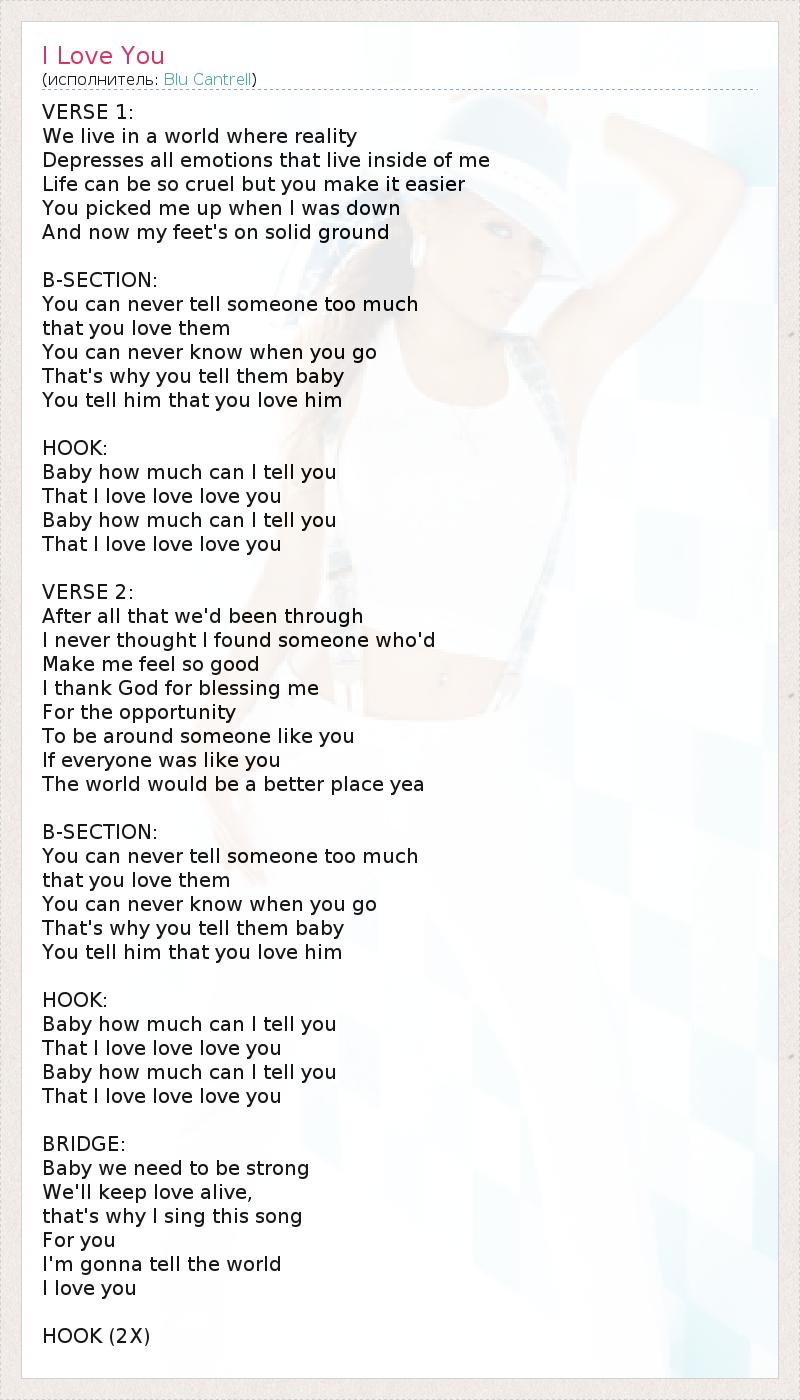 Это интересно:Блю Кантрелл (Blu Cantrell, настоящее имя - Тиффани Кобб; род. 16 марта 1976) - американская R&B/соул-исполнительница, автор собственных песен, номинант премии Грэмми за Bettersweet (как за лучший R&B-альбом 2003 года).БиографияМать Блю Кантрелл была джазовой певицей. Маленькая Блю очень любила слушать как поёт мать и ещё в юном возрасте уже решила чем будет заниматься дальше. Она много разъезжала... продолжение