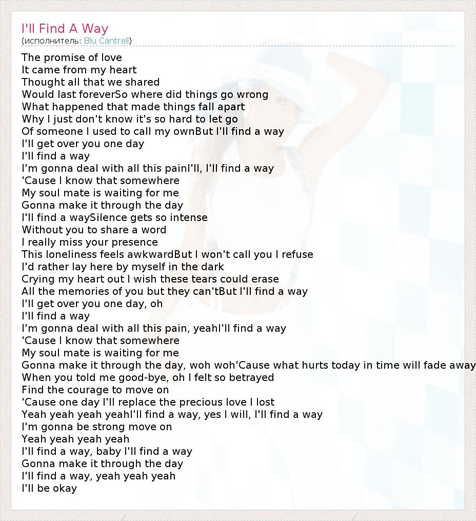 А как ты думаешь, о чем песня "I'll Find A Way" ?