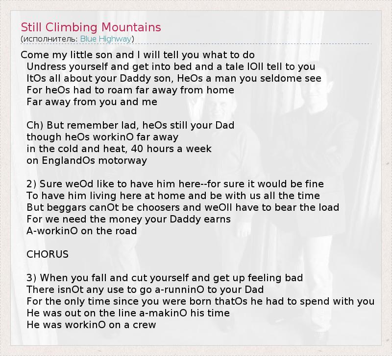 А как ты думаешь, о чем песня "Still Climbing Mountains" ?
