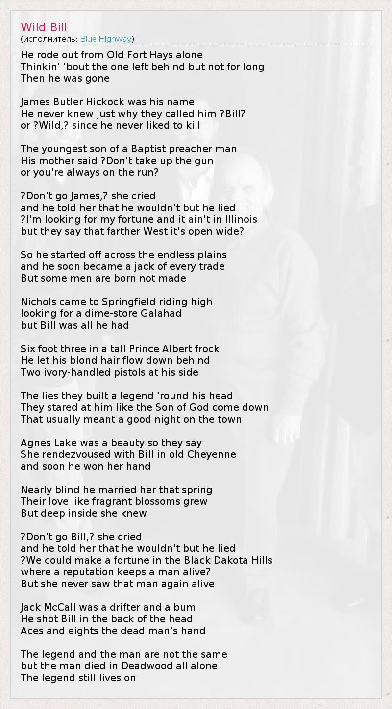 А как ты думаешь, о чем песня "Wild Bill" ?