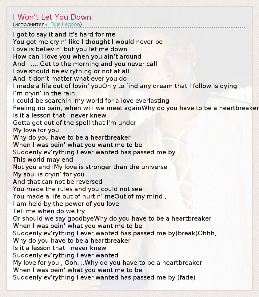А как ты думаешь, о чем песня "I Won't Let You Down" ?