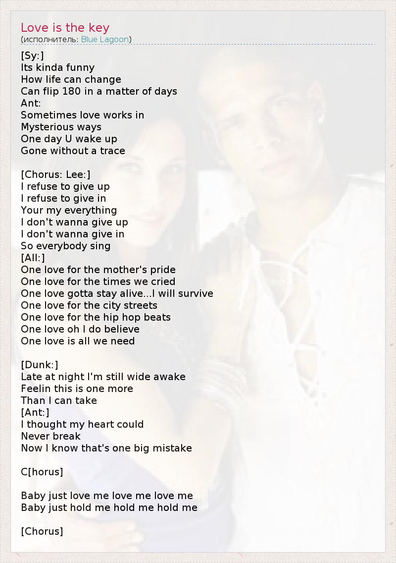 А как ты думаешь, о чем песня "Love is the key" ?