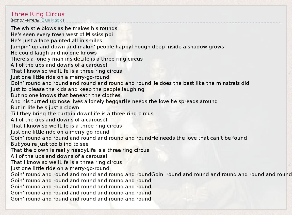 А как ты думаешь, о чем песня "Three Ring Circus" ?