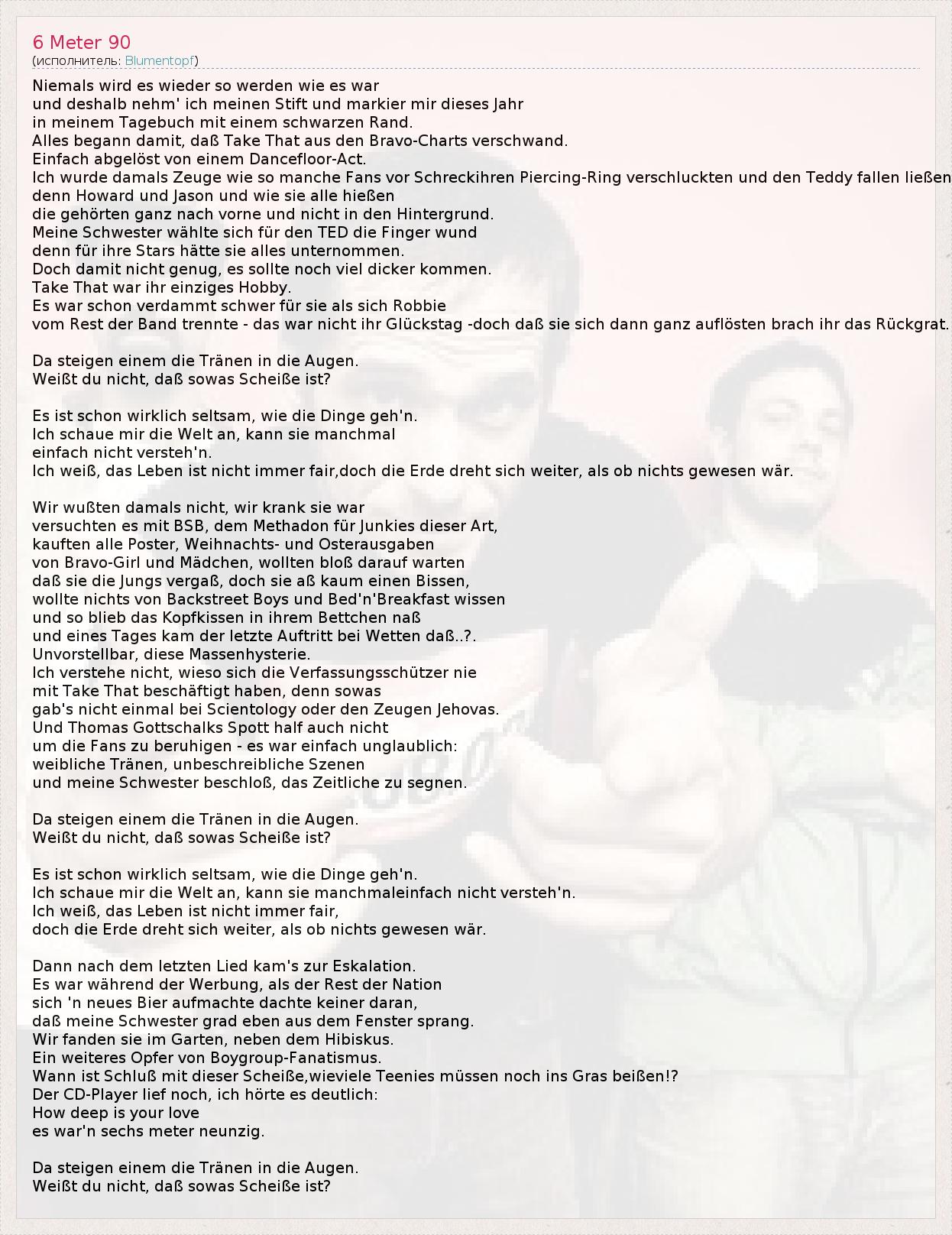 А как ты думаешь, о чем песня "6 Meter 90" ?