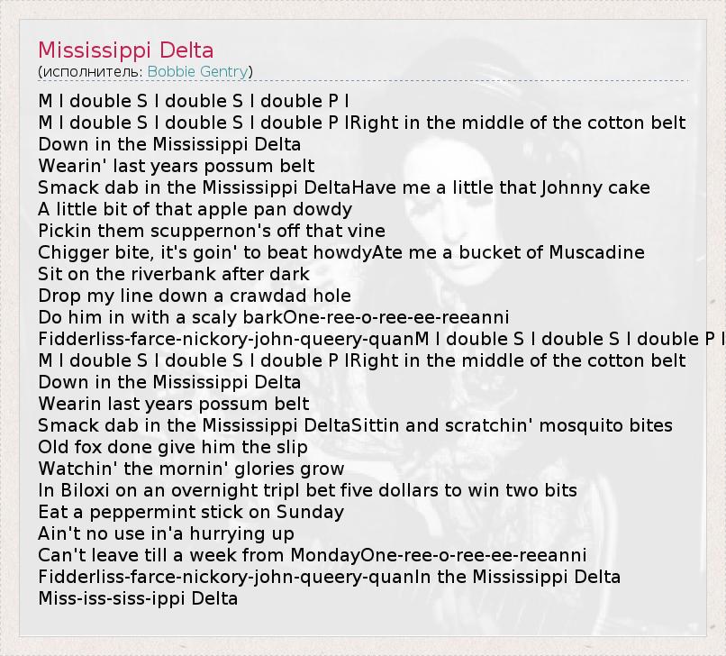 А как ты думаешь, о чем песня "Mississippi Delta" ?