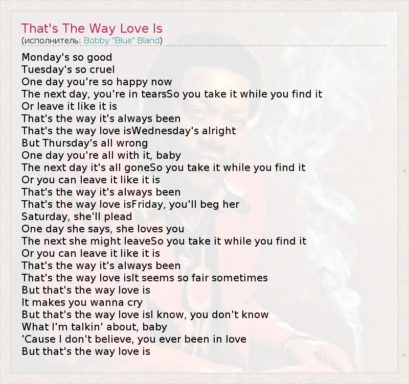 А как ты думаешь, о чем песня "That's The Way Love Is" ?