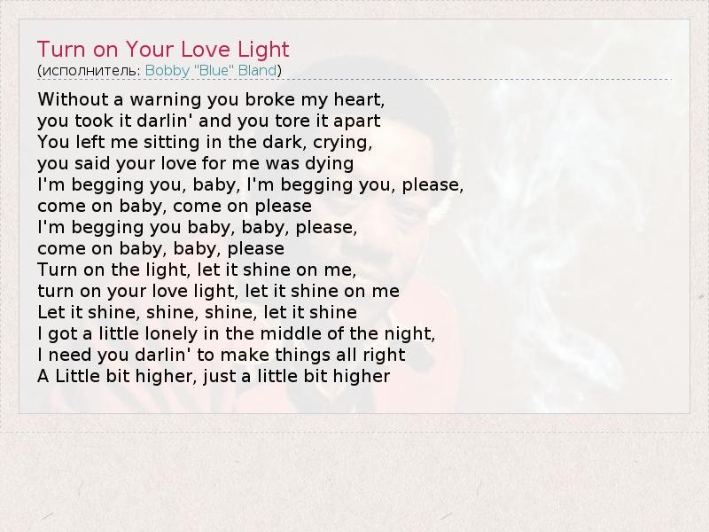 А как ты думаешь, о чем песня "Turn on Your Love Light" ?