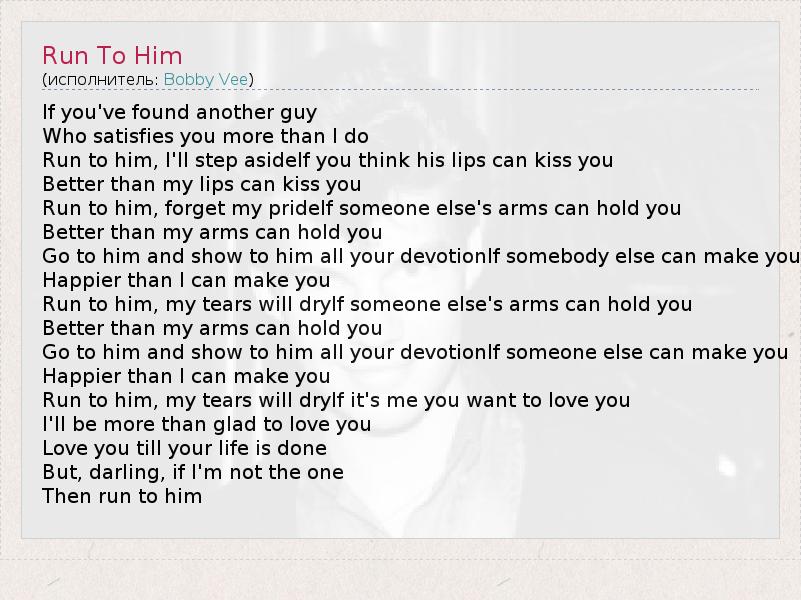 Это интересно:ВИ БОББИ (Vee Bobby) (настоящее имя Веллин Роберт Томас, Velline Robert Thomas) (р. 30 апреля 1943, Фарго, Северная Дакота), американский поп-певец. Кумиром Бобби Ви — светловолосого и улыбчивого поп-идола начала 1960-х годов, исполнявшего милые и пустоватые песенки для тинэйджеров, — был Бадди Холли.Родился в семье скрипача-виртуоза, который перед 2-й мировой войной эмигрировал из Италии. В начале 1959 Бобби... продолжение