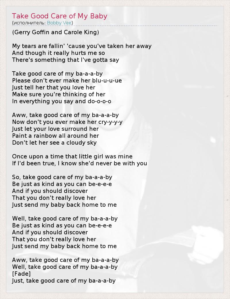 А как ты думаешь, о чем песня "Take Good Care of My Baby" ?