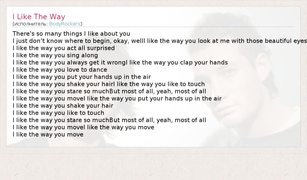 А как ты думаешь, о чем песня "I Like The Way" ?