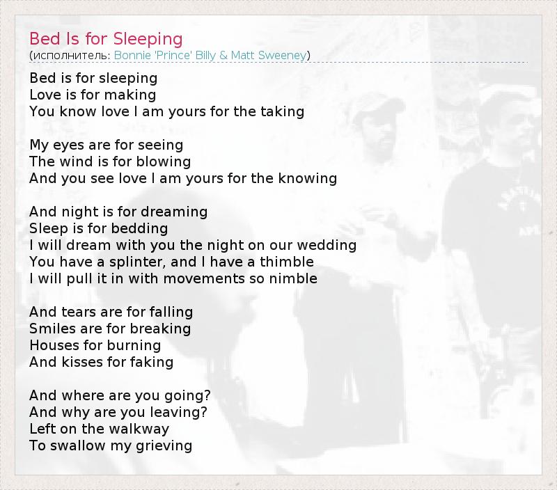 А как ты думаешь, о чем песня "Bed Is for Sleeping" ?