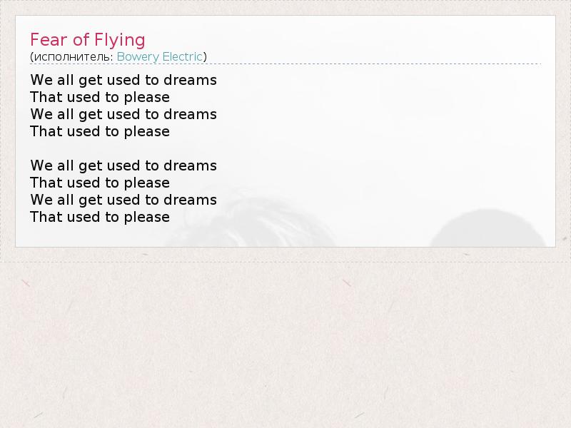 А как ты думаешь, о чем песня "Fear of Flying" ?