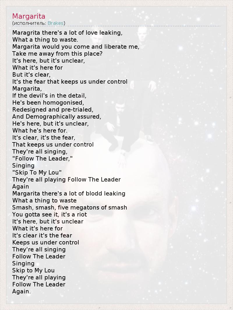 А как ты думаешь, о чем песня "Margarita" ?