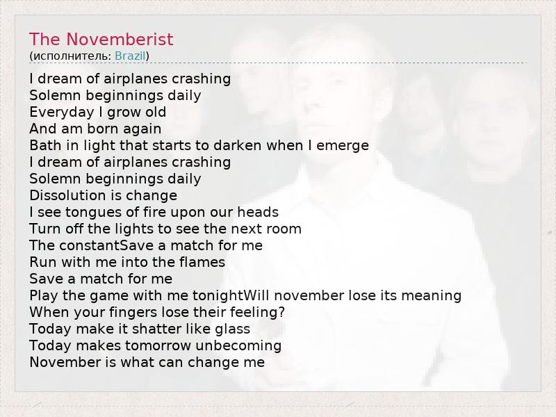 А как ты думаешь, о чем песня "The Novemberist" ?