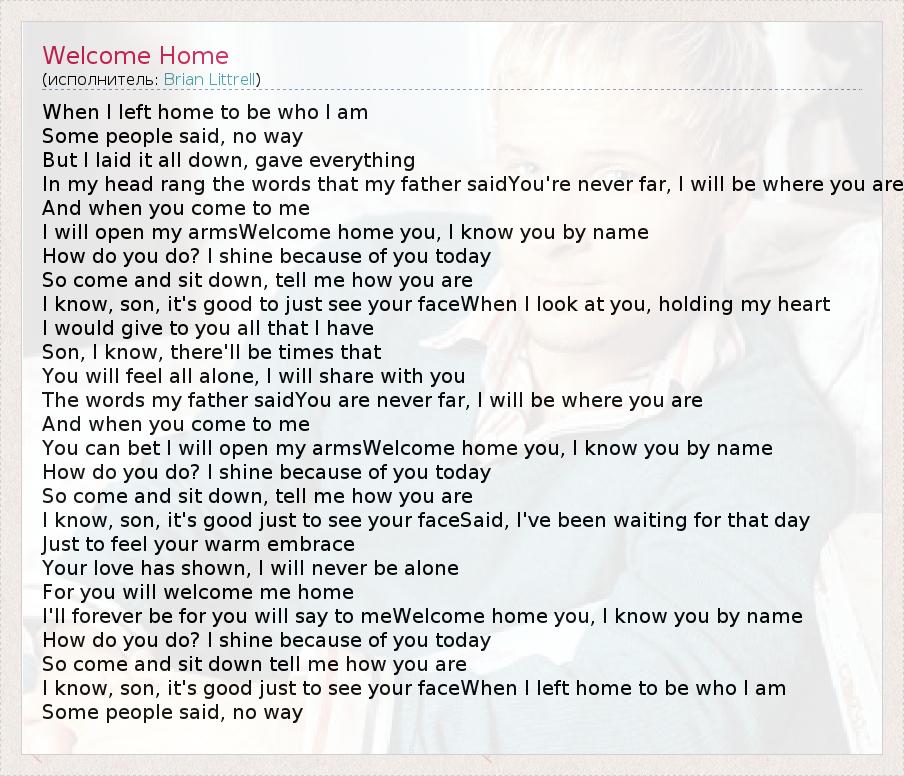 А как ты думаешь, о чем песня "Welcome Home" ?