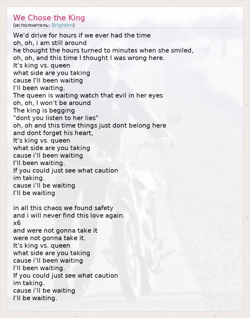 А как ты думаешь, о чем песня "We Chose the King" ?