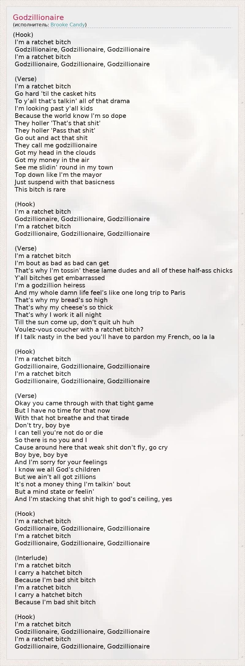 А как ты думаешь, о чем песня "Godzillionaire" ?