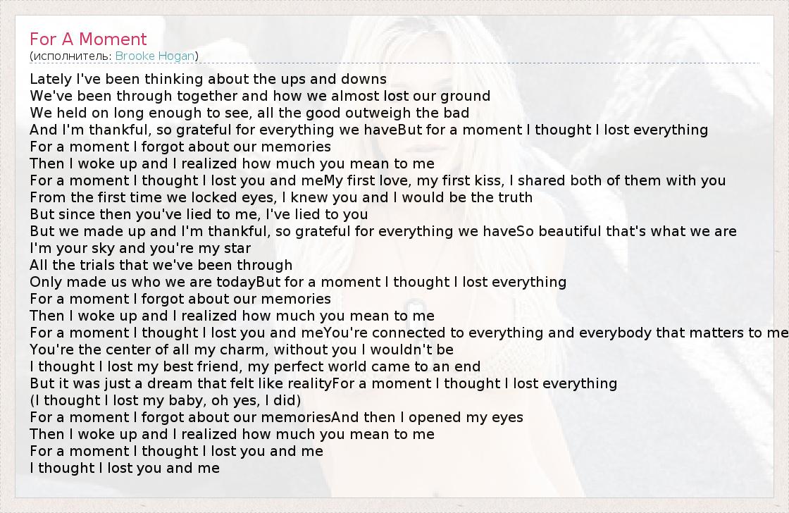 For a moment I forgot about our memoriesAnd then I opened my eyes