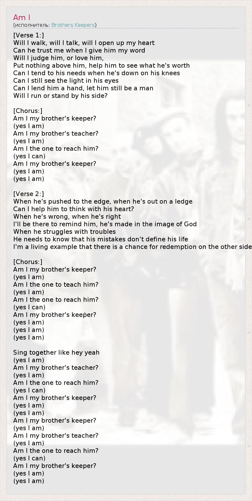 Это интересно:Brothers Keepers is a German-based transnational anti-racism project, bringing together hip hop, reggae and soul musicians, headed primarily by Afro-Germans.The idea for the project took root in the 1990s, and when a German of Mozambiquan origin, named Alberto Adriano, was brutally killed by neo-Nazis in Dessau (East Germany) in 2000, a group of musicians decided to organize and fight back. Brothers Keepers has local groups active in information campaigns, presenting teach-ins at schools etc. However the project primarily gained prominence in Germany through the collaborative album, Lightkultur. The title is a pun on conservative politician Günther Beckstein’s term "deutsche Leitkultur"... продолжение