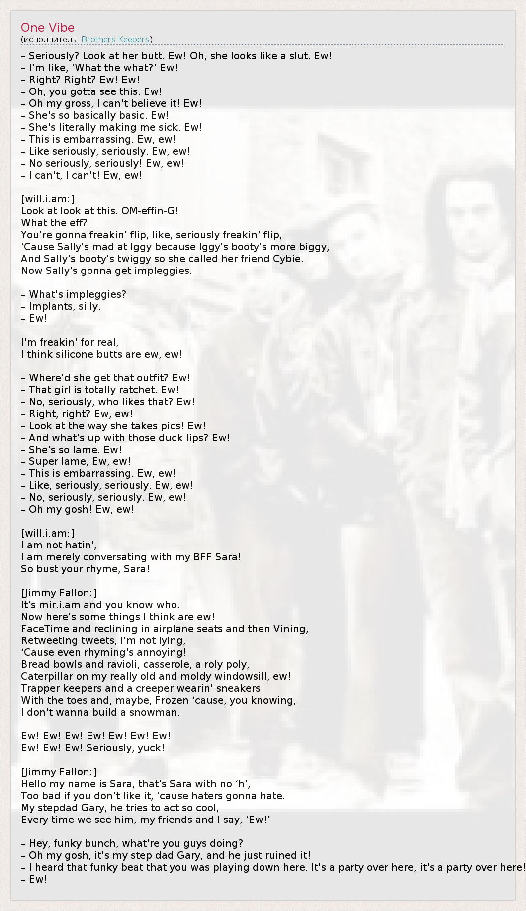 А как ты думаешь, о чем песня "One Vibe" ?