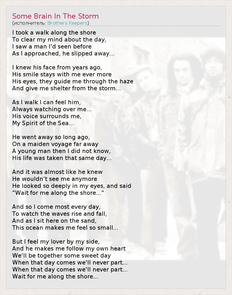 А как ты думаешь, о чем песня "Some Brain In The Storm" ?
