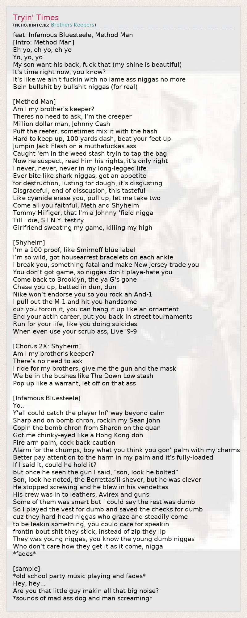 А как ты думаешь, о чем песня "Tryin' Times" ?
