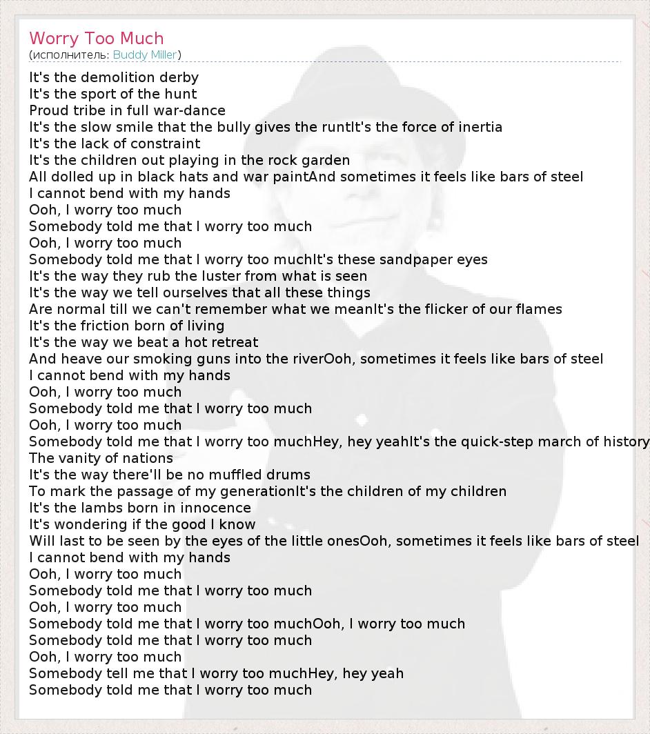 А как ты думаешь, о чем песня "Worry Too Much" ?