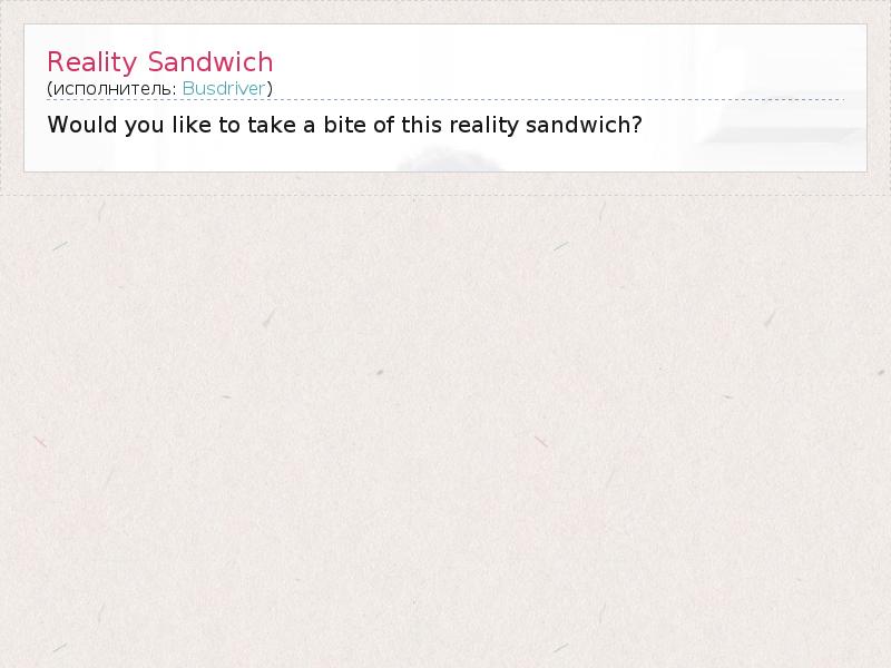 А как ты думаешь, о чем песня "Reality Sandwich" ?