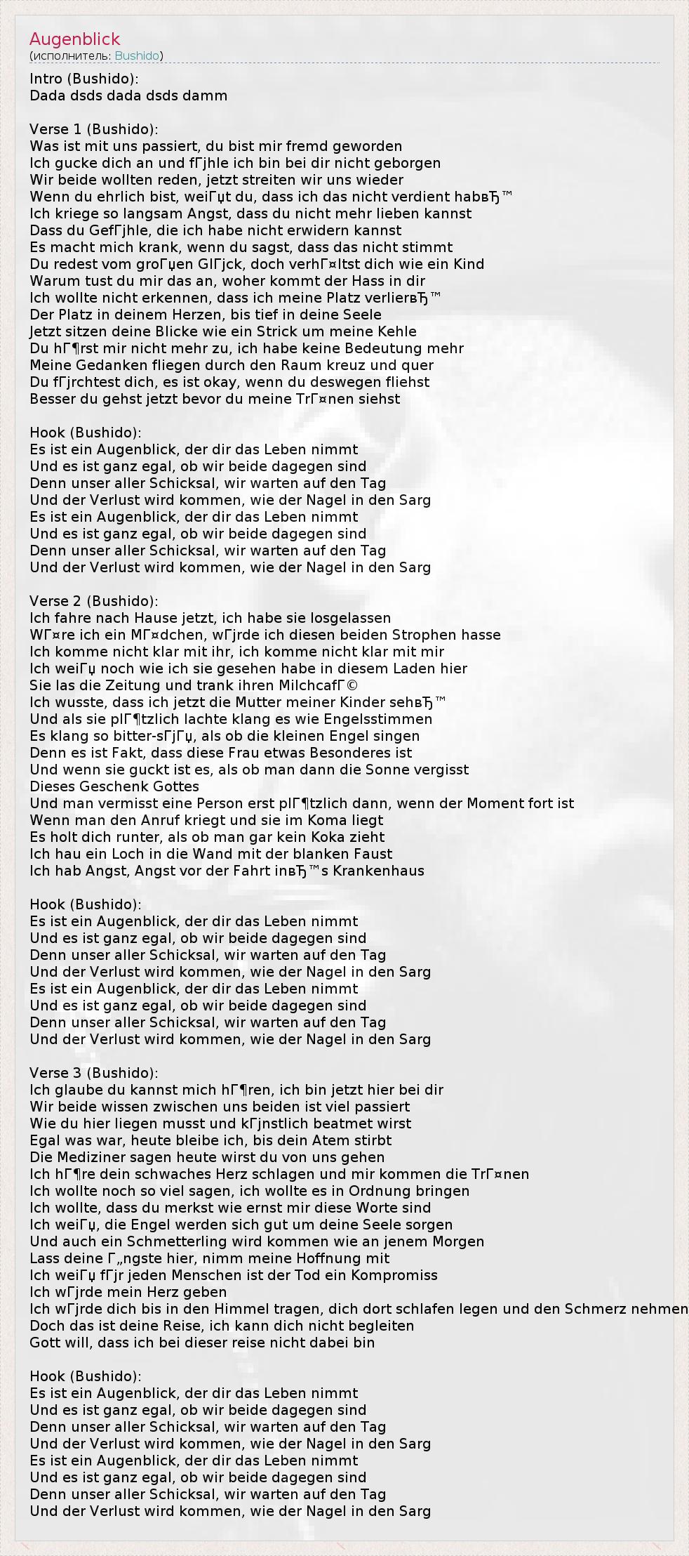 А как ты думаешь, о чем песня "Augenblick" ?