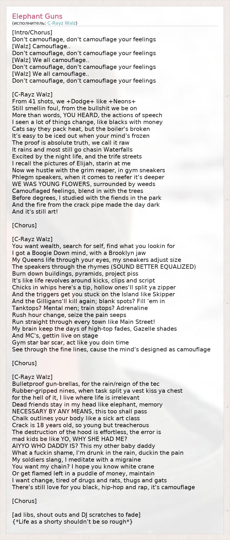А как ты думаешь, о чем песня "Elephant Guns" ?