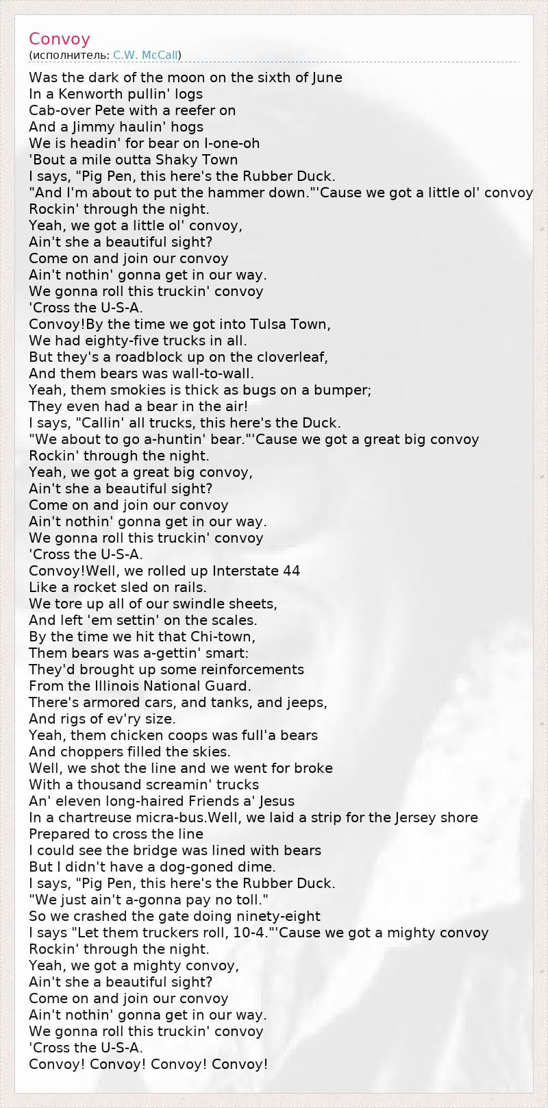 I says "Let them truckers roll, 10-4."'Cause we got a mighty convoy