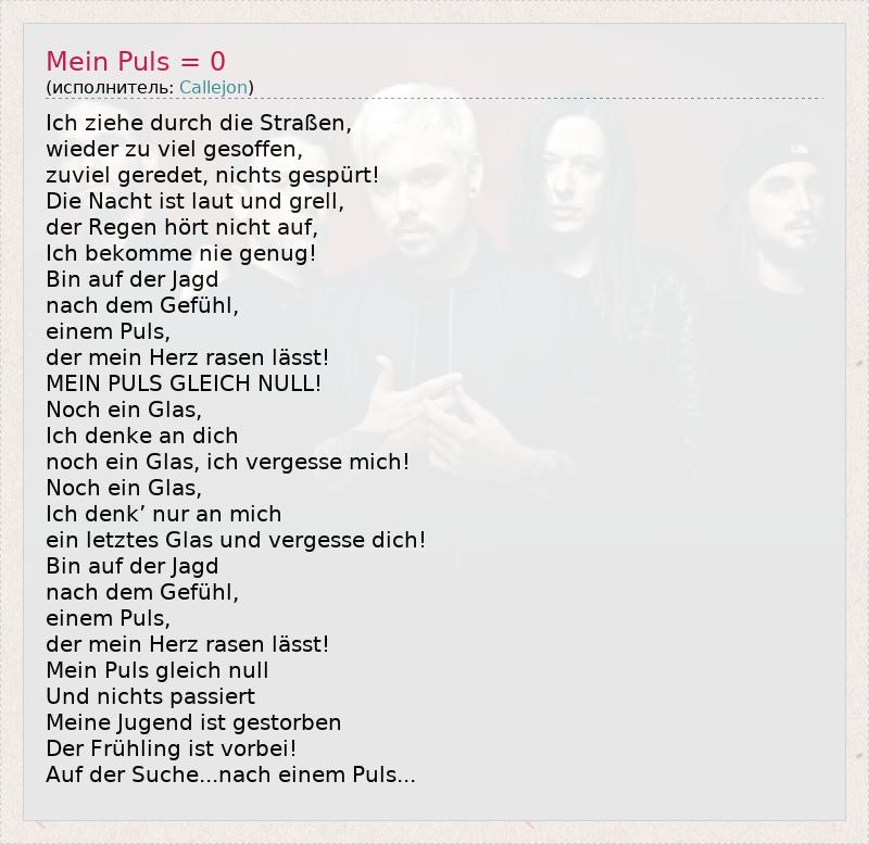 А как ты думаешь, о чем песня "Mein Puls = 0" ?