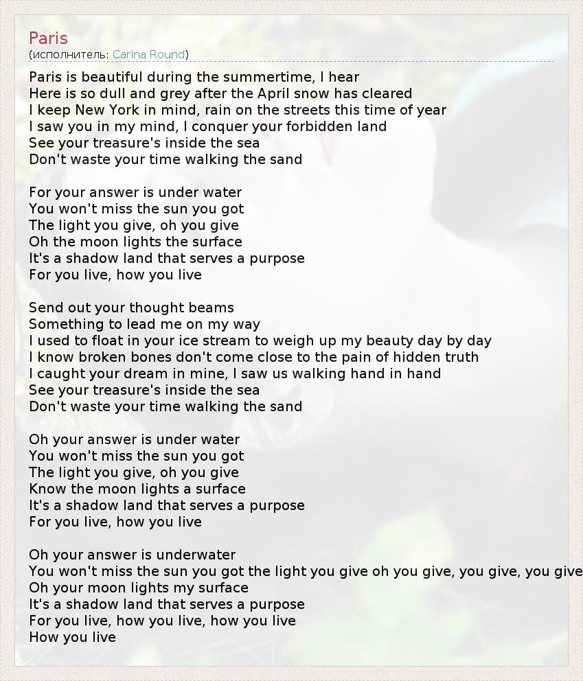А как ты думаешь, о чем песня "Paris" ?