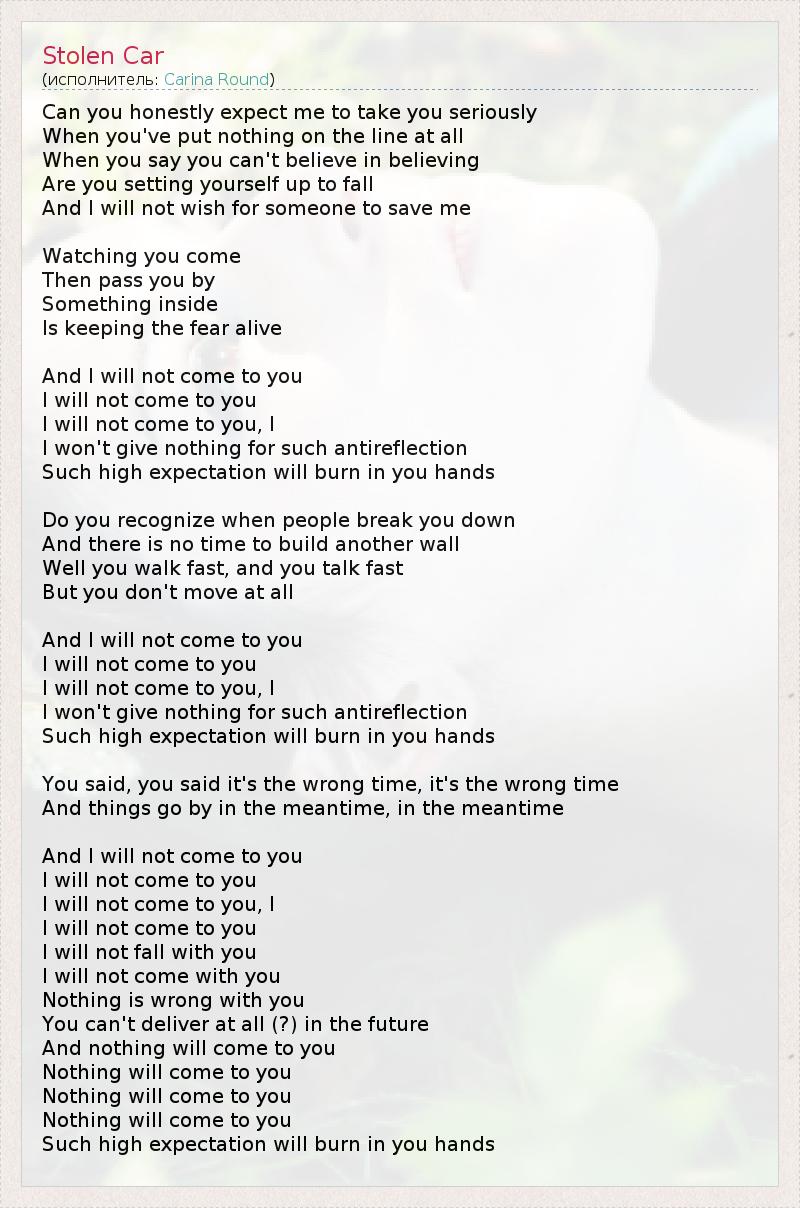 А как ты думаешь, о чем песня "Stolen Car" ?