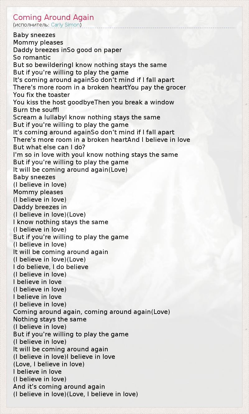 А как ты думаешь, о чем песня "Coming Around Again" ?