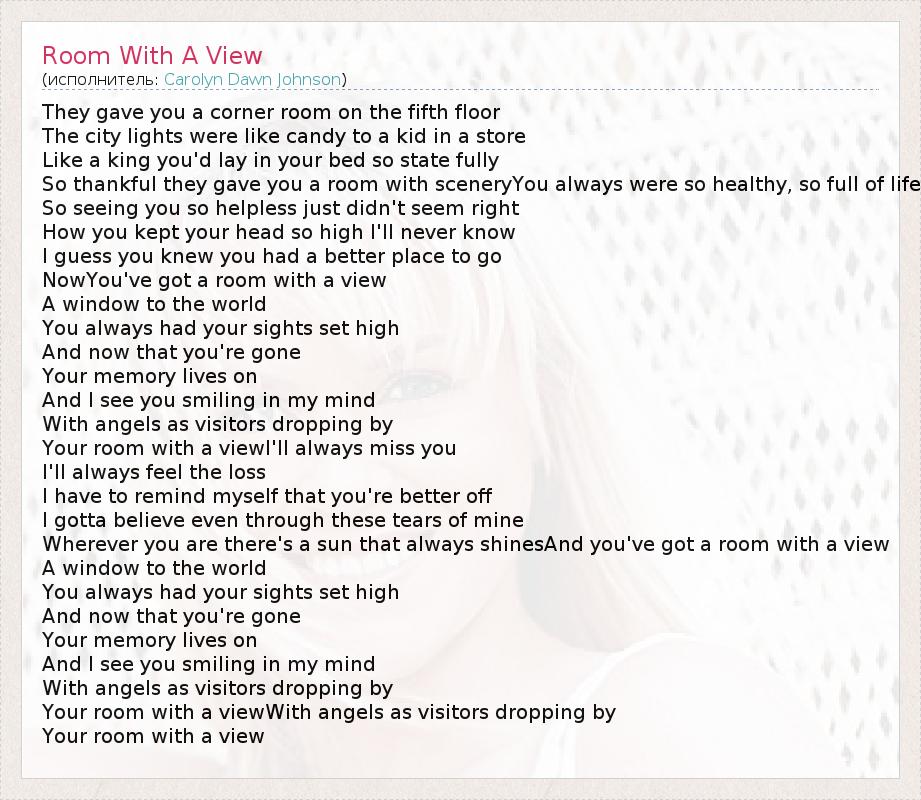 Wherever you are there's a sun that always shinesAnd you've got a room with a view