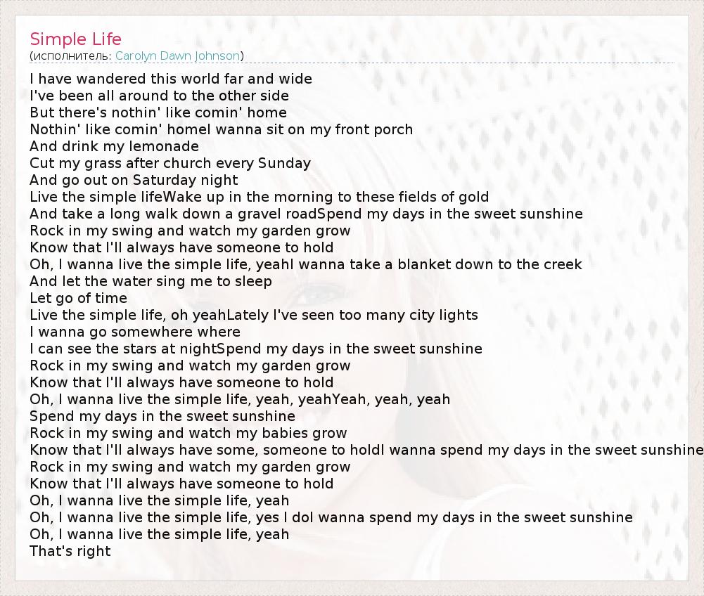 А как ты думаешь, о чем песня "Simple Life" ?