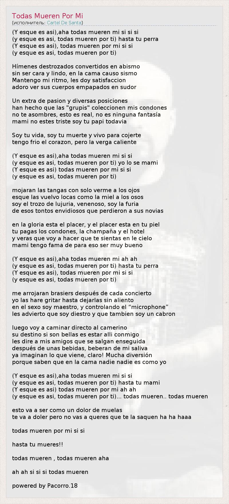 А как ты думаешь, о чем песня "Todas Mueren Por Mi" ?