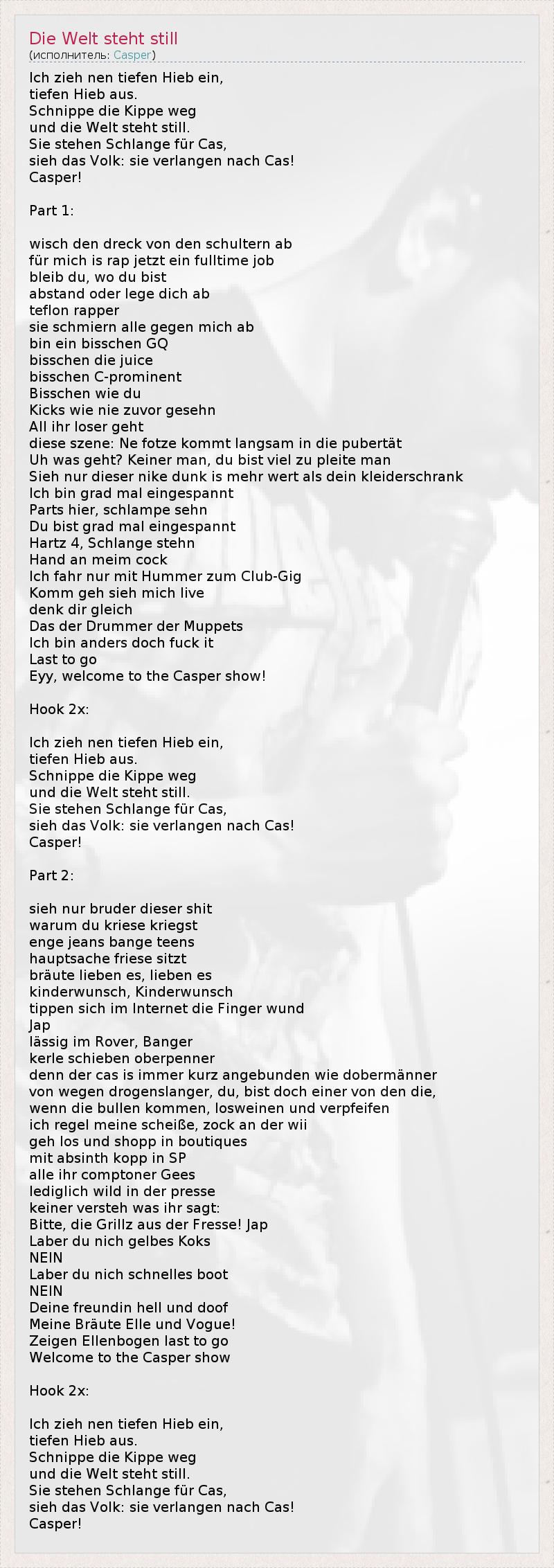 ГлавнаяИсполнителиCasperDie Welt steht still