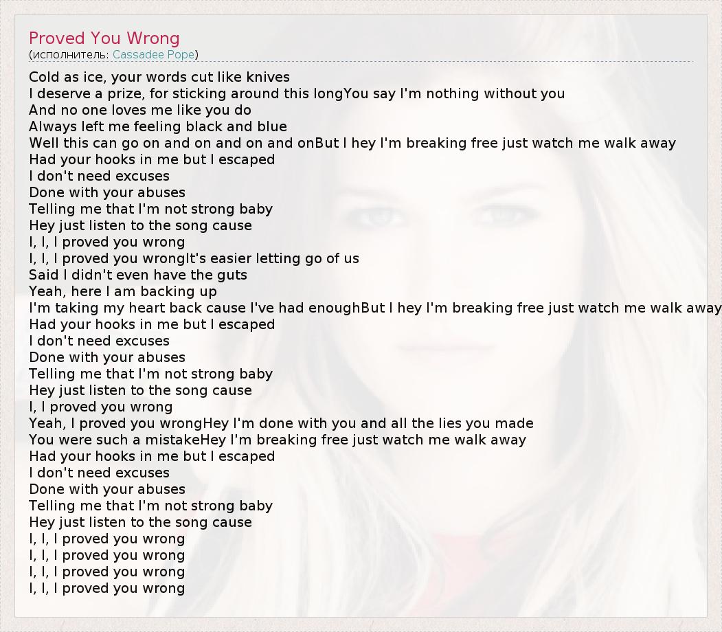 А как ты думаешь, о чем песня "Proved You Wrong" ?