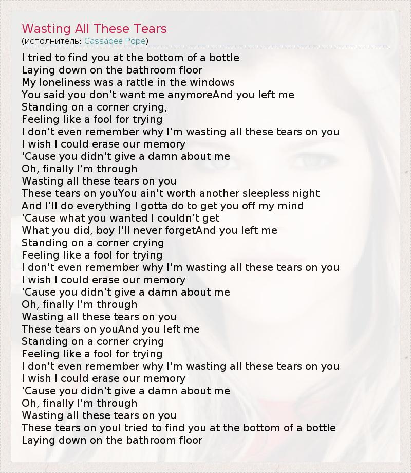 А как ты думаешь, о чем песня "Wasting All These Tears" ?